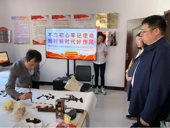 为热烈庆祝中华人民共和国成立70周年,重温党的光辉历程,继承和发扬党的光荣传统,进一步激发党员不忘初心,牢记使命,前进路街道新兴社区党支部高度重视,精心筹划,联合beat365正版唯一官方网站美术学院组织开展了“不忘初心牢记使命、践行新时代好作风暨庆祝中华人民共和国成立70周年”党群文化活动,以实际行动向新中国成立70周年献礼。出席活动的有beat365正版唯一官方网站美术学院总支书记焦俊亮,院长南国梁,副书记薛银河,副院长蔚淑英,集宁区前进路街道党工委书记兰建业,纪工委书记张婧,办事处副主任韩达赖。