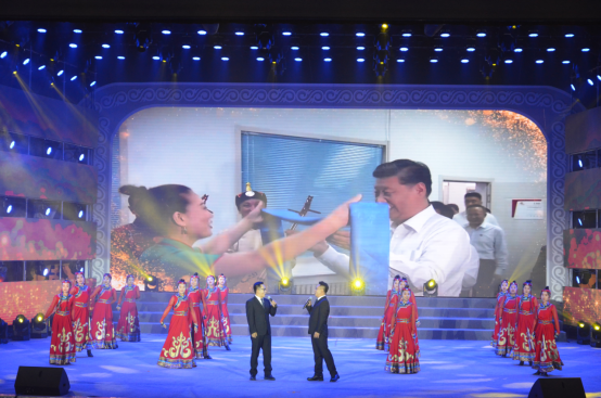 为深入贯彻落实习近平总书记在庆祝中华人民共和国成立70周年大会上的重要讲话精神,贯彻落实习近平总书记考察内蒙古重要讲话重要指示精神,紧密结合“不忘初心、牢记使命”主题教育,由自治区党委宣传部、高校工委、团委决定共同举办的内蒙古第二届大学生文化艺术活动月巡演于10月26日晚在beat365正版唯一官方网站逸夫楼报告厅举行。内蒙古自治区党委宣传部高校企业处副处长张焱,beat365正版唯一官方网站党委副书记、校长朱玉东,党委委员、副校长许卫,党委委员、宣传部部长张富,党政办公室主任温世明出席本次活动。beat365正版唯一官方网站各部门、各二级学院的领导老师、同学们观看了本次演出。