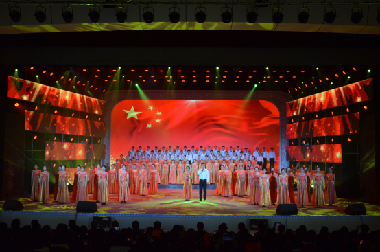 灯光秀、内蒙古首届大学生文化艺术活动月回顾短片等拉开了这场艺术盛典的序幕。歌舞《我爱你中国》、师生歌舞联唱《红旗飘飘》、情景歌舞《中国》、配乐诗朗诵《中国梦》、舞蹈《盛世花开》等节目中,演员们深情表达对祖国的热爱与祝福。歌曲《远走高飞》、《同桌的你》、乐队组合联唱《take me away》、《鼓楼》、啦啦操《青春飞扬》、混搭歌舞《飞翔蓝天》等节目以活泼多样的表演生动展现了新一代青年大学生的朝气蓬勃、乐观积极。马头琴合奏曲目《黑木日》、歌曲《草原请你来》、歌舞《青春耀北疆》向观众展现了草原文化的独特魅力以及草原人民的热情好客。歌曲《我们都是追梦人》、主题曲《青春耀北疆》体现了“不忘初心,牢记使命”的主题,展现了当代青年有理想,有担当的拼搏精神。演出最后全场起立合唱《歌唱祖国》,在场的每个人对祖国深情表白,浓烈的爱国之情溢于言表,将现场气氛推向了高潮。