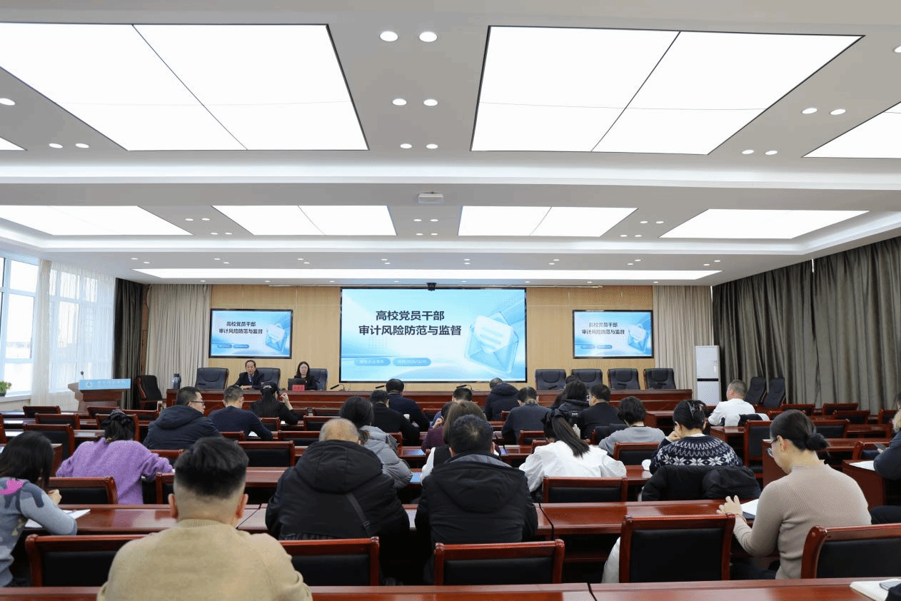 根据学校党委组织部印发的2025年度党员干部集中培训工作方案,12月19日审计处举办了高校党员干部审计风险防范与监督专题讲座。本次培训会特邀beat365官网经济与管理学院副院长、教授么秀杰作专题讲座。审计处处长兰立新主持会议,各二级学院院长及办公室主任、各相关部门科级干部参加了会议。