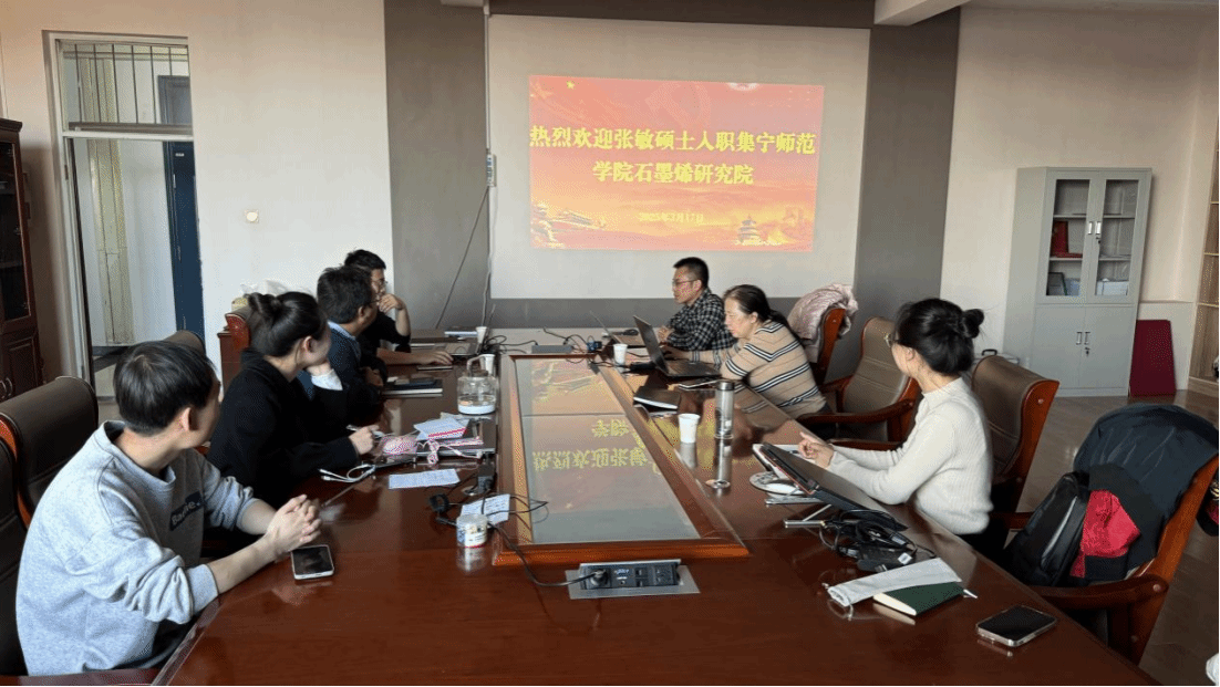 研究院领导和全体科研骨干参加会议。研究院各位老师对张敏的加入表示热烈欢迎,大家都认为张敏老师的专业背景与研究院科研战略高度契合,希望她能快速融入团队,为研究院新能源材料研发注入新动能,同时在这个充满活力的‘科研家庭’中找到归属与快乐”。