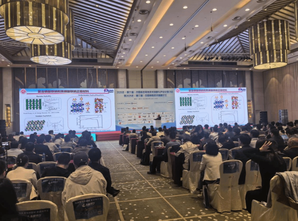 石墨烯研究院安军伟、孟祥锋、郝慧清在武汉中国固态电池研讨会暨2025年中国钠电技术高峰论坛听取中国科学院大连化学物理研究所吴忠帅研究员分享固态钠离子电池的关键材料与器件的报告