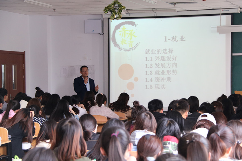 岳彩鑫结合自身近几年就业、创业的奋斗历程,围绕大学生关注度较高的就业问题展开宣讲。简单分析了当前的就业形势,告诉学生应了解现状,端正态度,进一步明确树立正确的就业、择业观念。针对就业“缓冲期”应该如何度过进行了重点讲解,并表示欢迎同学们加入赤承教育共谋发展。