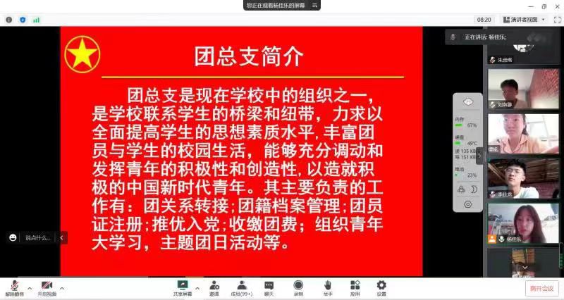 为帮助新生学习团员基本知识,掌握智慧团建的管理与维护,9月16日15时30分,学院团总支副书记杨佳乐,从团总支简介、日常工作、共青团性质、基本职能、任务及权利、智慧团建的使用方法等方面做了详细讲解和说明。