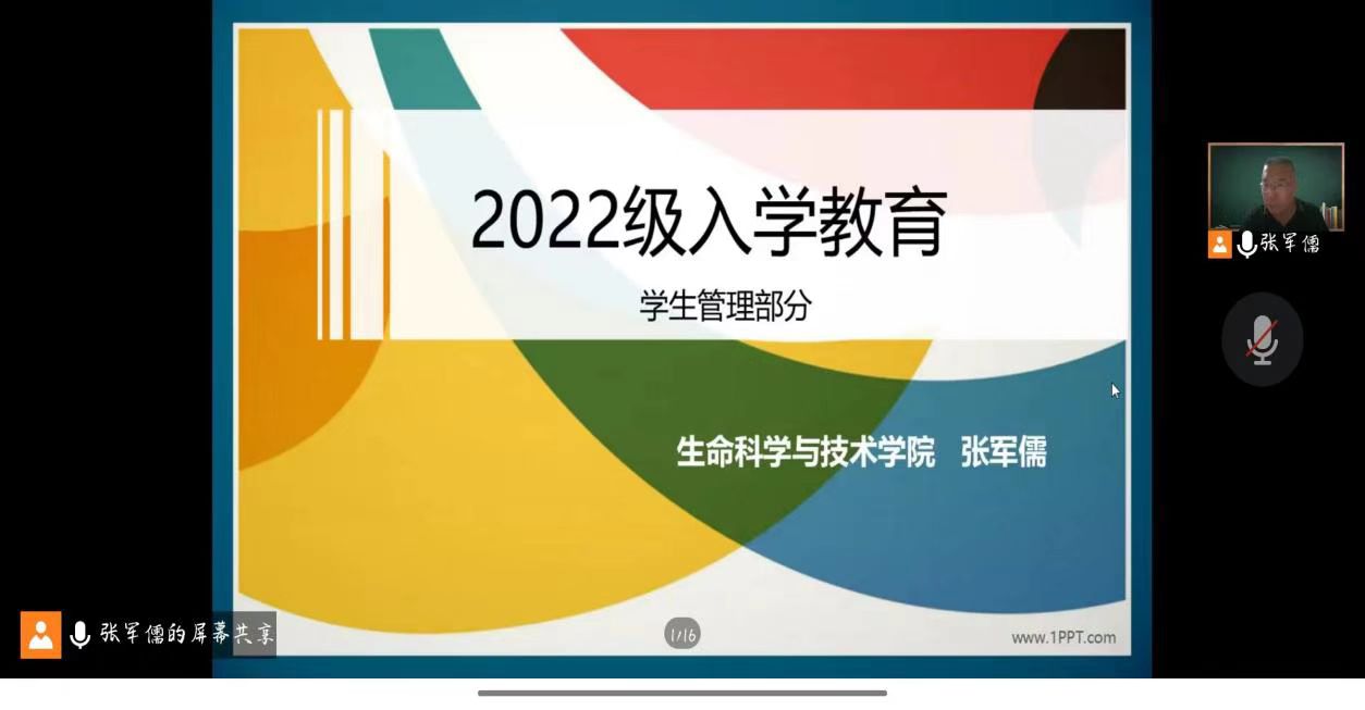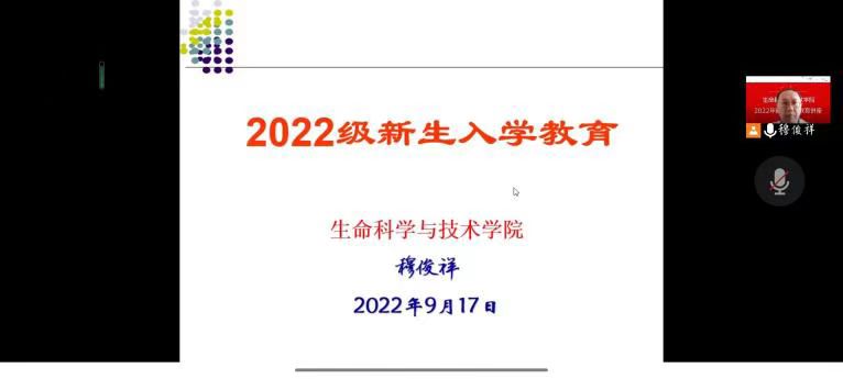 入学教育是新生的“第一课”,是大学生涯的起点和基石,是保障人才培养质量的基础环节,也是加强思想政治教育的重要途径。为引导新生顺利适应大学生活、快速完成角色转变、科学规划大学生涯,按照学校《关于做好2022级新生入学教育的通知》精神,生命科学与技术学院于9月16日、9月17日通过腾讯会议平台开展了2022级新生入学教育系列活动。