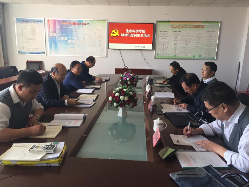 根据《beat365正版唯一官方网站党政办公室关于印发<中共beat365正版唯一官方网站委员会关于认真开好2018年度处级领导班子民主生活会的通知>的通知》(集师党政办发〔2019〕5号)精神,2019年3月21日下午三点四十,生命科学学院领导班子在逸夫楼707室召开2018年度民主生活会,党委委员、副校长许卫,督导组张来锁、杨福和、石德林出席了会议。会议由生命科学学院党总支书记曹兴明主持,党总支副书记、院长任琴,副书记孙登高,副院长穆俊祥参加了会议。
