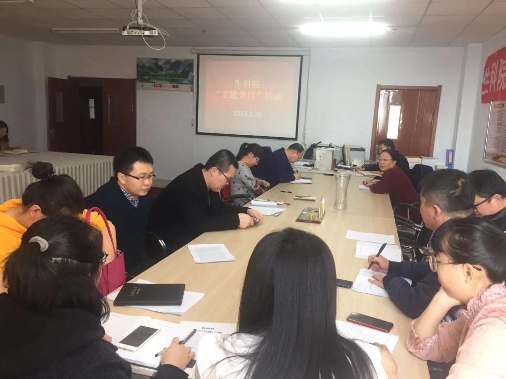 2019年2月28日下午,生命科学学院全体师生党员举行了学习陈宝生部长2019年全国教育大会讲话及讨论的“主题党日”活动。活动由生科院教工党支部书记于博主持。