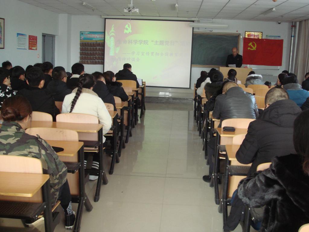 2019年1月3日下午,生命科学学院全体教师和40余名学生代表举行了“主题党日”活动暨学习宣传贯彻全国教育大会精神对谈会。活动由生科院教工党支部书记于博主持。