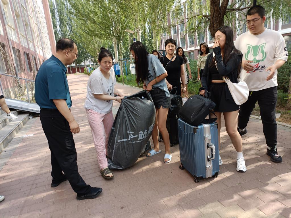 教师与学生干部提前在宿舍楼前集合,组成志愿服务队,化身“搬运工”,为毕业学子们提供一站式服务。从整理、搬运到运输,从宿舍门到学校南门、西门,到处都有他们忙碌的身影。一双双热情伸出的手、一张张带着笑意的面庞、一个个扛起行李陪着毕业生笑谈远去的身影,让这个伤感的毕业季充满了阳光般的温暖,为毕业生们增添了一份温馨而美好的回忆。