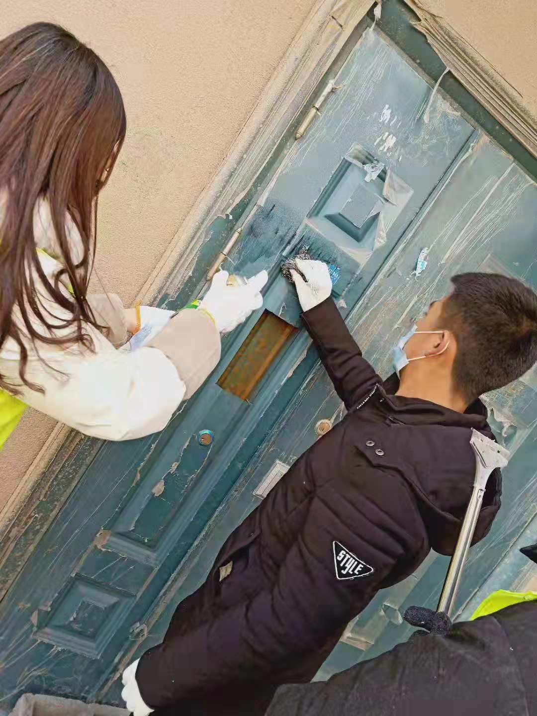 活动伊始,陈宇浩老师和白海子镇党委副书记张中士分别就本次活动讲话,明确了活动的意义且着重强调安全第一的原则。随后同学们有序分为三组,在社区工作人员的带领下,大学生志愿者们来到事先分配好的江东郡各个小区,顶着凛冽的寒风,参与到清理辖区小广告,为创建文明城市增光添彩的助力创城志愿服务中。虽然气温达到零下二十几度,但丝毫没有影响到志愿者们的热情,他们不嫌脏不嫌累,干劲十足。在他们的努力与带动下,小区的业主也主动加入到清理自家楼道小广告的行列中来,小区楼道的环境卫生情况得到很大改善