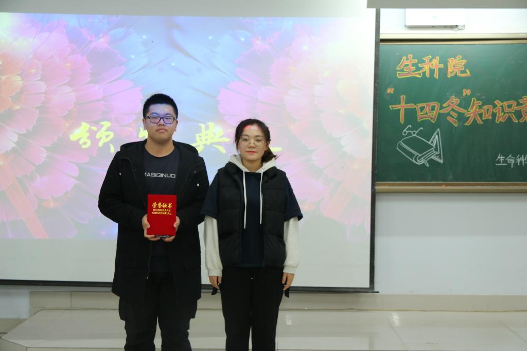 为大力宣传中华人民共和国第十四届冬季运动会,激发我院学子对冬运会的热情,主动关注并了解冬运会,生命科学学院于2019年11月10日19时在逸夫楼201室成功举办“十四冬”知识竞赛。担任本次比赛的评委有生命科学学院团总支副书记刘金、青协分会会长武佳欣、青协分会副会长兼学生会副主席薛丽梅、学生会副主席刘殿宇和郑秀文。