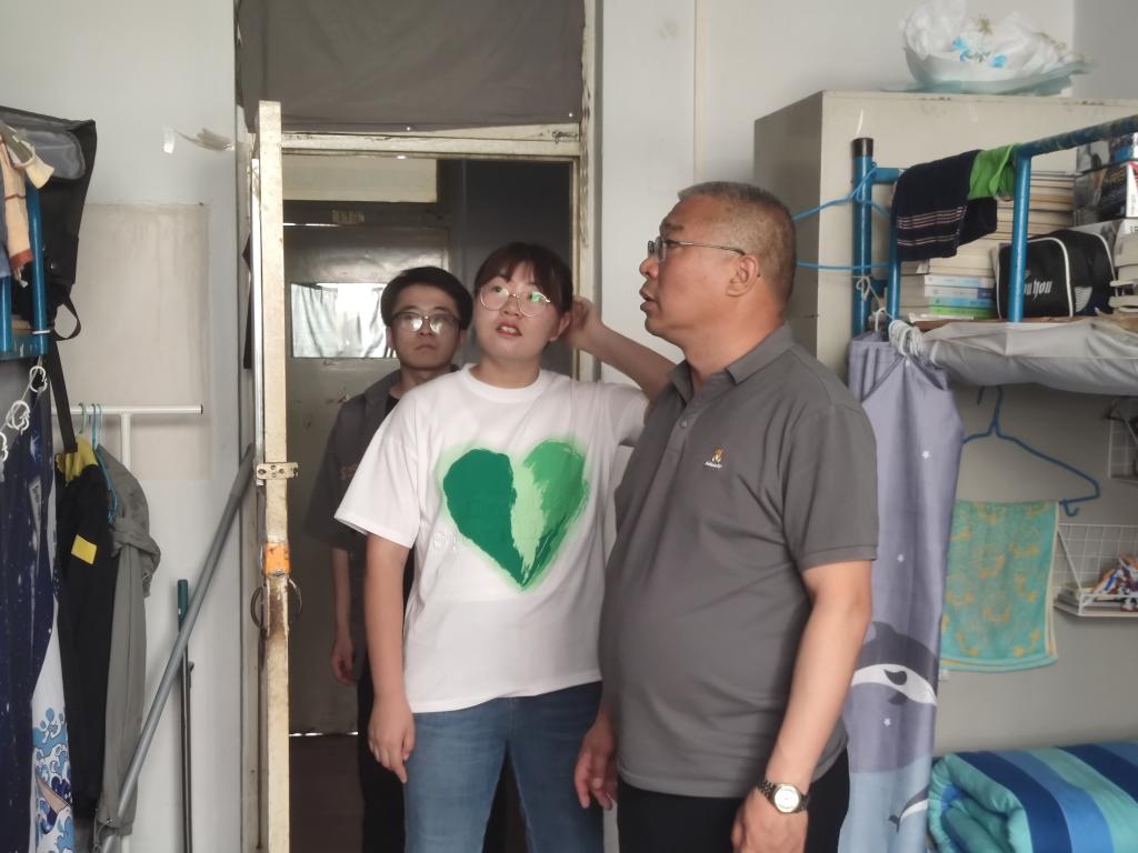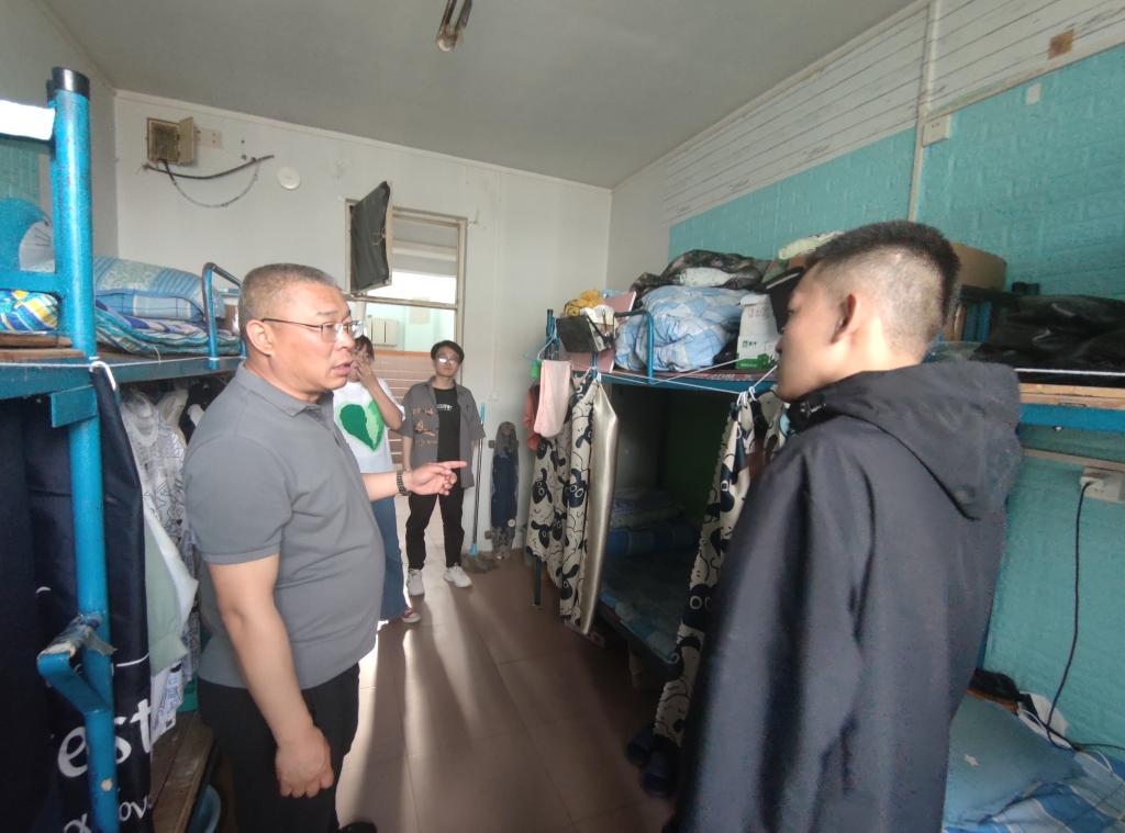 为了增强学生的安全意识,保障学生的人身财产安全,提高学生住宿幸福感,创造安全、健康、文明、和谐的宿舍环境,2023年6月4日下午,生命科学与技术学院党总支副书记张军儒、团总支书记张荟带领学生干部,对我院学生宿舍进行了走访,实地了解生科院学子的学习、生活情况。