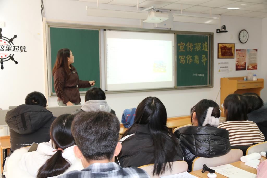 诺琪副主编授课内容生动详实、通俗易懂,具有很强的指导性、启发性和可操作性,同学们收获颇丰,大大提升了宣传报道写作能力。