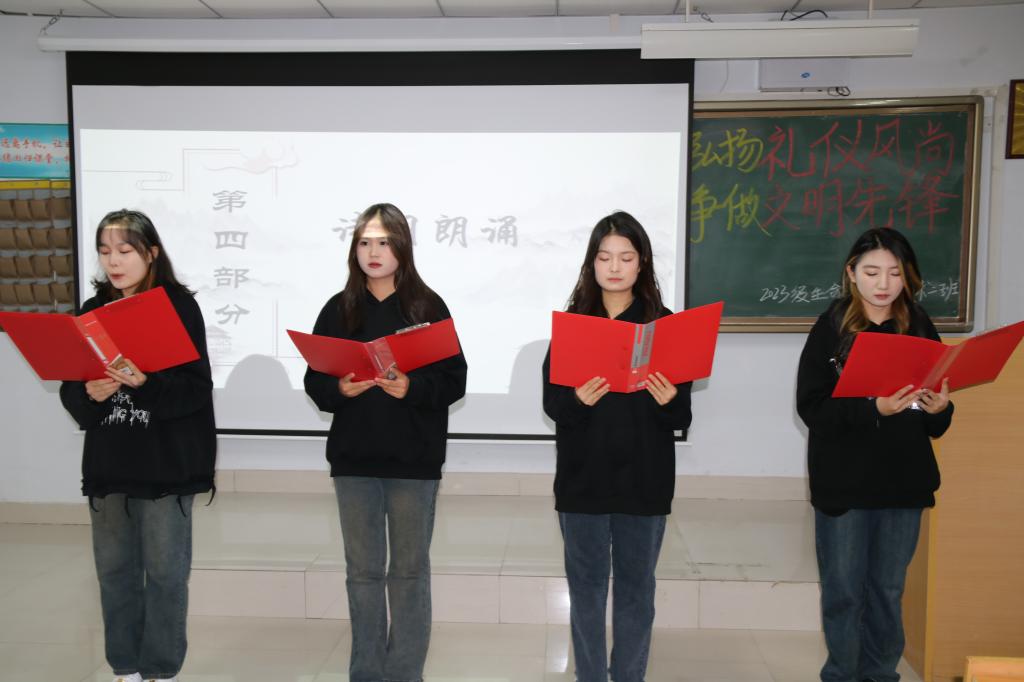 为传承中华民族优良传统,弘扬文明礼仪,培养学生树立“讲文明、重礼仪”的文明意识,引导学生培养文明的行为习惯,我院各班级以知识竞赛、主题演讲多种形式开展本次主题班会。
