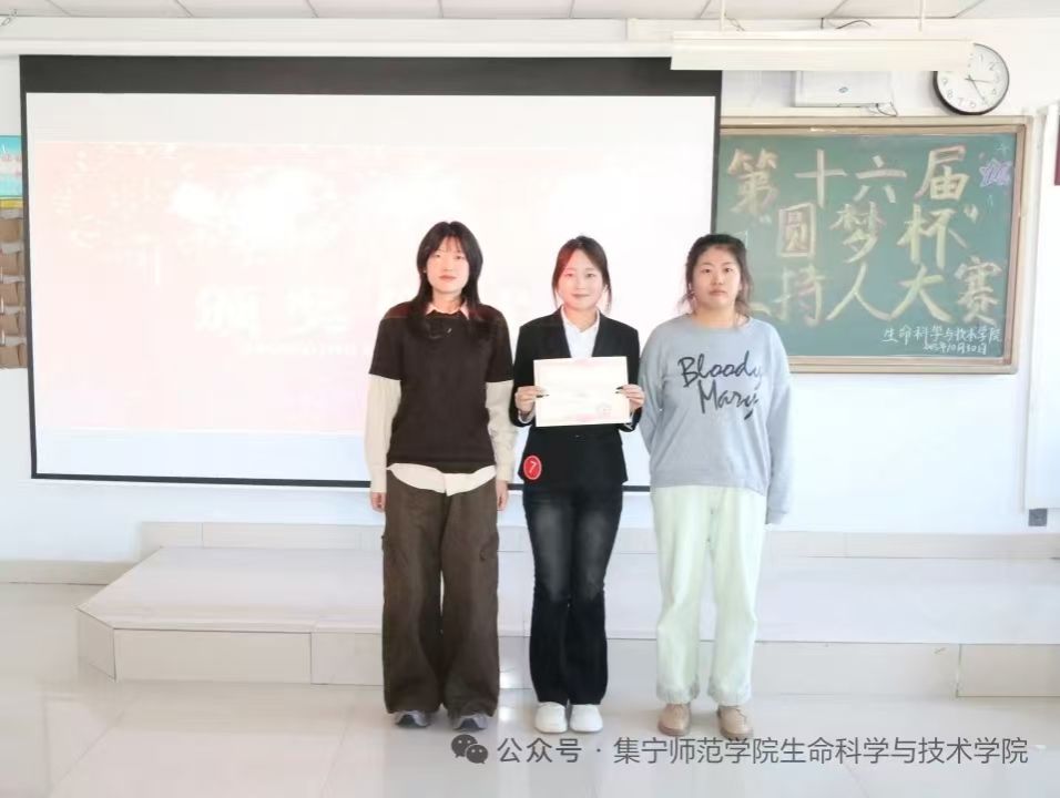 为丰富大学生的课余文化生活,展现自我风采,生命科学与技术学院于10月30日下午在逸夫楼201室成功举办第十六届“圆梦杯”主持人大赛。校团委刘佳敏、学团办公室主任张荟和辅导员董雅群担任本次大赛评委。