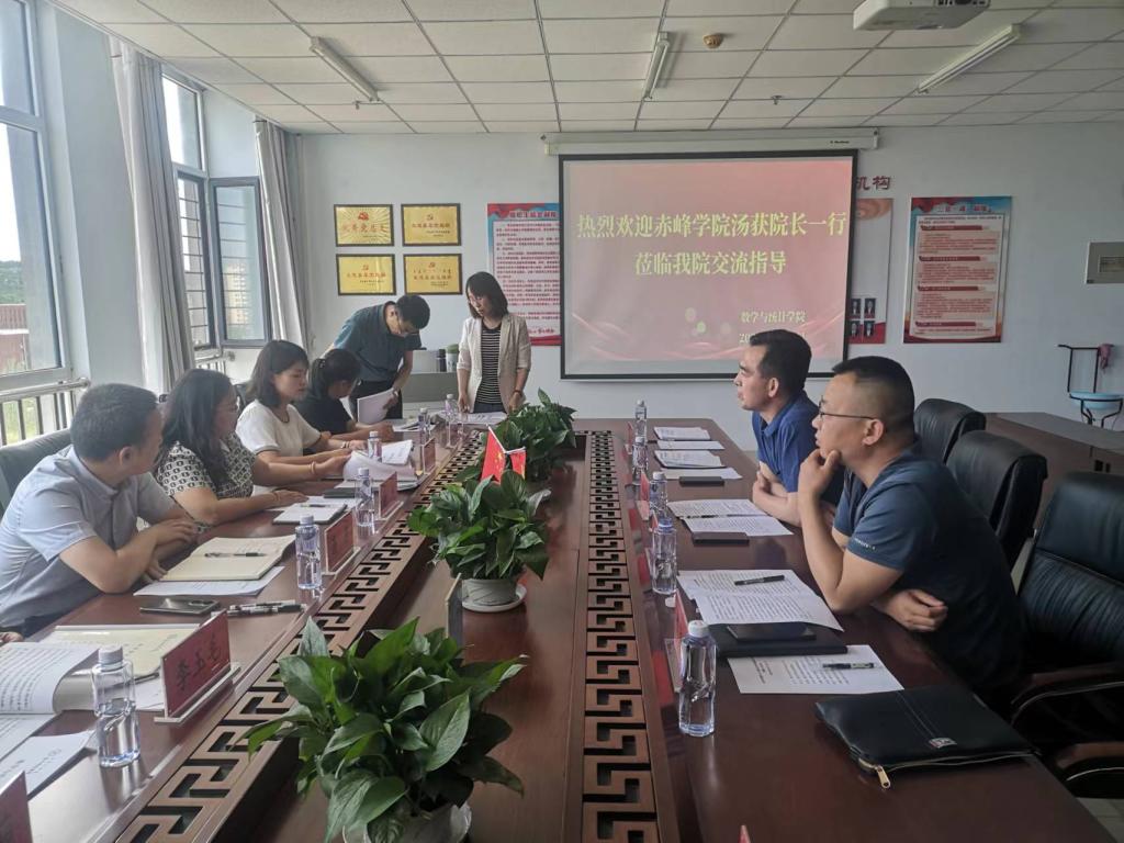 6月16日,赤峰学院数学与计算机科学学院党总支书记敖恩、院长汤获一行7人来beat365官网数学与统计学院和计算机与大数据学院进行交流调研。数学与统计学院党总支书记张宏智、院长何永峰及计算机与大数据学院院长邢德胜参加了交流座谈。