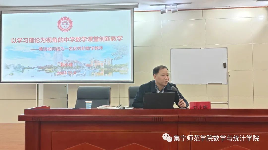 11月4日上午9时,集美大学刘小辉教授在beat365官网图书馆报告厅进行了“以学习理论为视角的中学数学课堂创新教学”主题讲座,在讲座中刘小辉教授提出什么叫做事业、为什么要有事业、怎么做事业、用什么支撑事业,四个问题,并针对这四个问题进行了逐一解答。此外,刘教授还介绍了为师四境界,要求成为一名优秀的数学教师首先要爱岗敬业、关爱同学,以及利用“数学美”,激发学生的数学灵感,培养学生的创新能力。