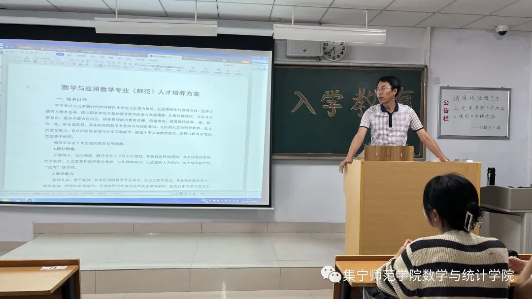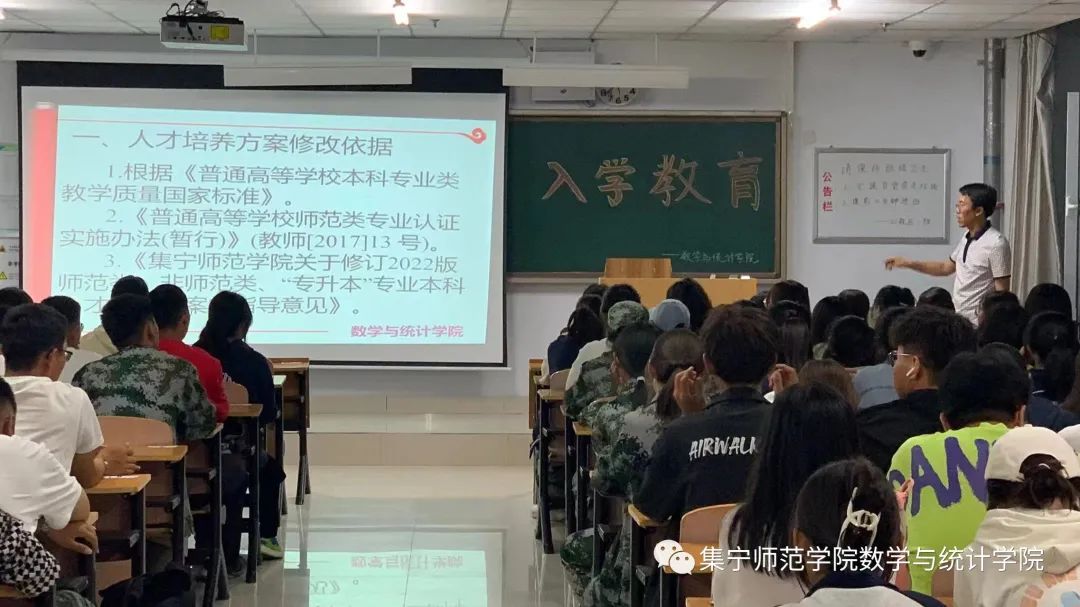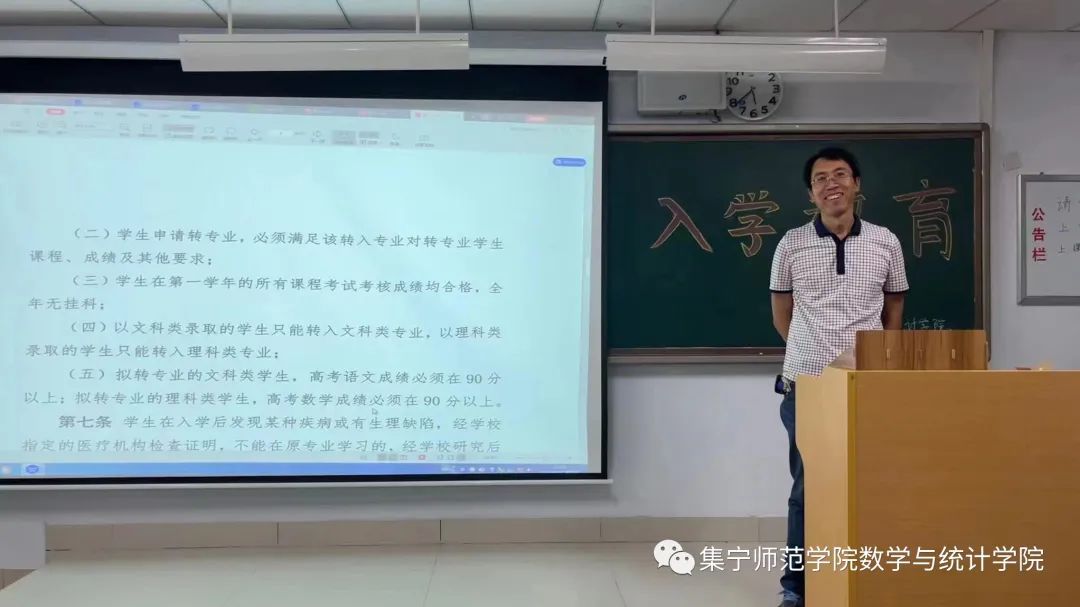 为帮助新生尽快适应环境、明确学习目标、合理规划大学生活。2023年9月17日,我院根据学风建设,人才培养计划,未来就业前景等方面在逸夫楼301教室开展了以专业人才培养方案解读为主题的新生入学教育活动。本次活动由beat365正版唯一官方网站数学与统计学院辅导员刘紫玉老师主持,特邀数学与统计学院副院长张越老师主讲,2023级班主任及全体学生参加了本次活动。