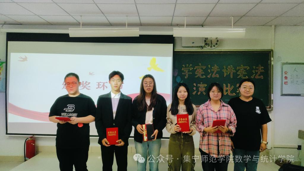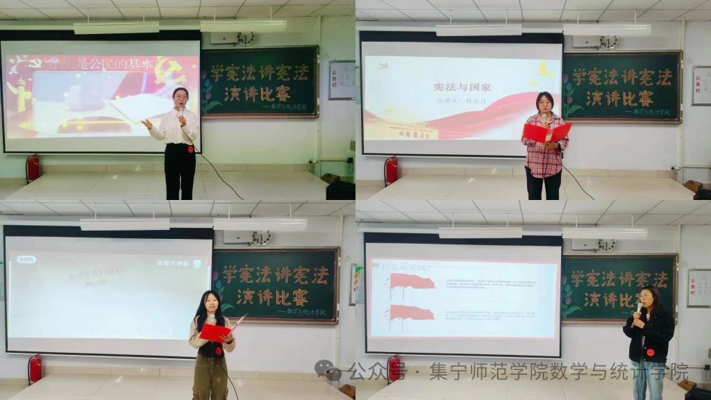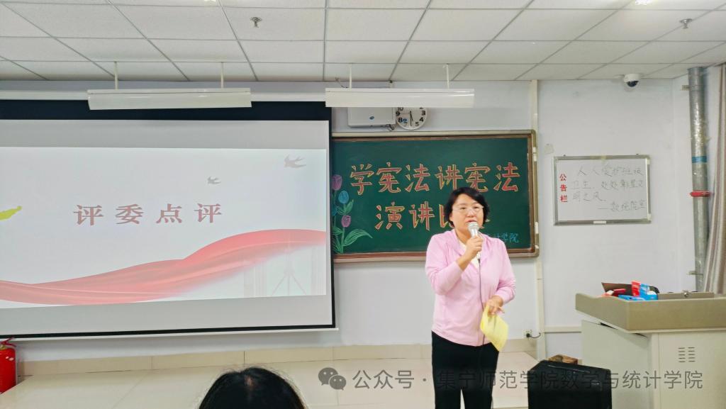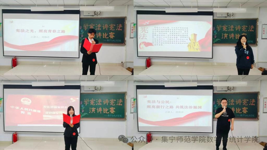 为了深入学习和宣传宪法精神,提高宪法意识。数学与统计学院于9月5日在逸夫楼301举办“学宪法,讲宪法”演讲比赛。我院党总支书记张宏智,党总支副书记常鑫,团学办主任高霞,辅导员刘紫玉出席本次比赛。