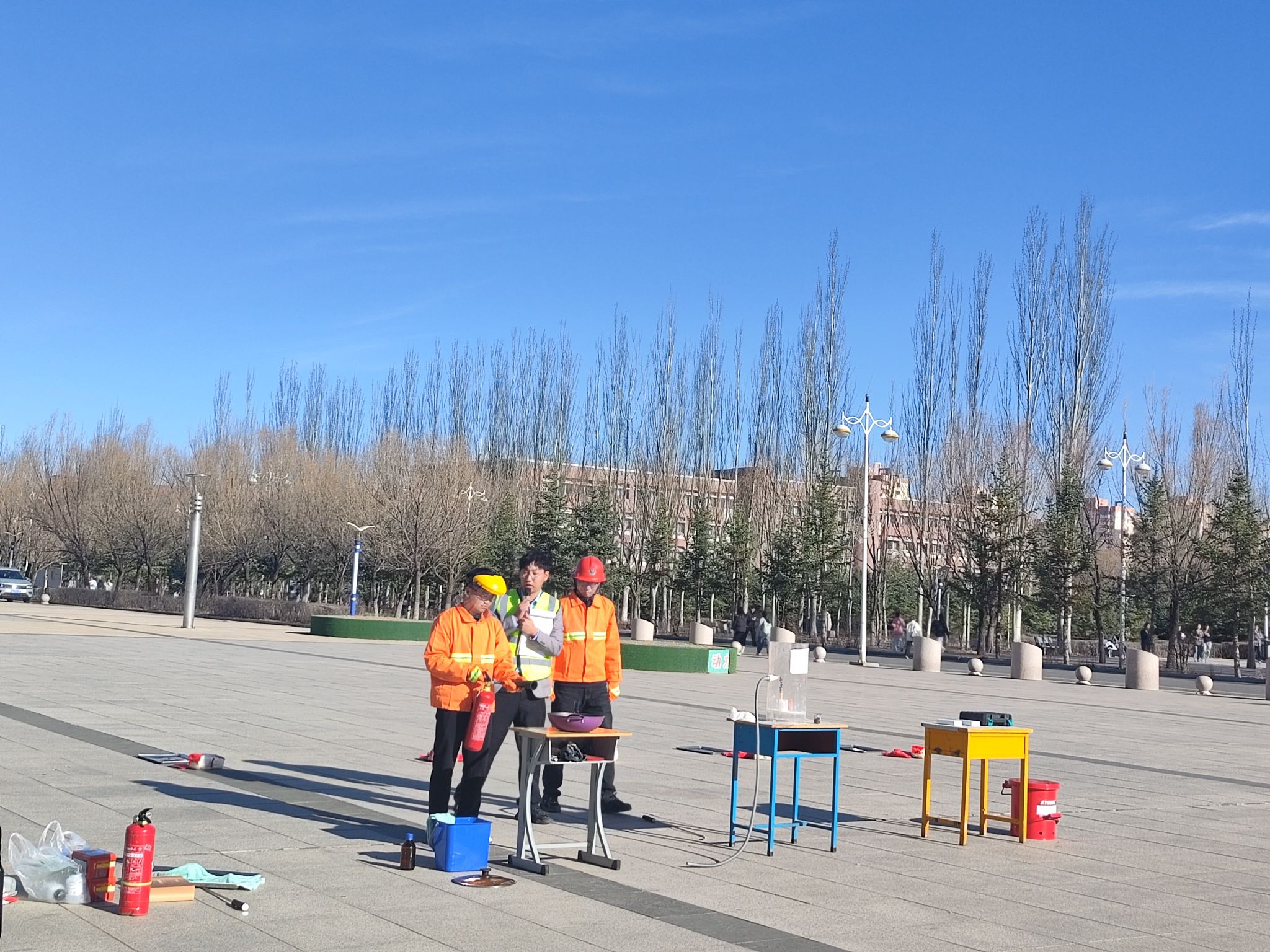 实验室化学品火灾应急演练在逸夫楼前广场举行。演练模拟实验过程中酒精灯倾倒、粉尘爆炸和锂电池穿刺等引发火情的场景,师生分组参与灭火毯熄灭流淌火演练。现场通过“理论讲解+情景还原”模式,强化了师生对“黄金救援时间”的把握能力。演练结束后,安全专家对操作细节进行点评,指出“应急响应速度与科学处理是降低事故损失的关键”。