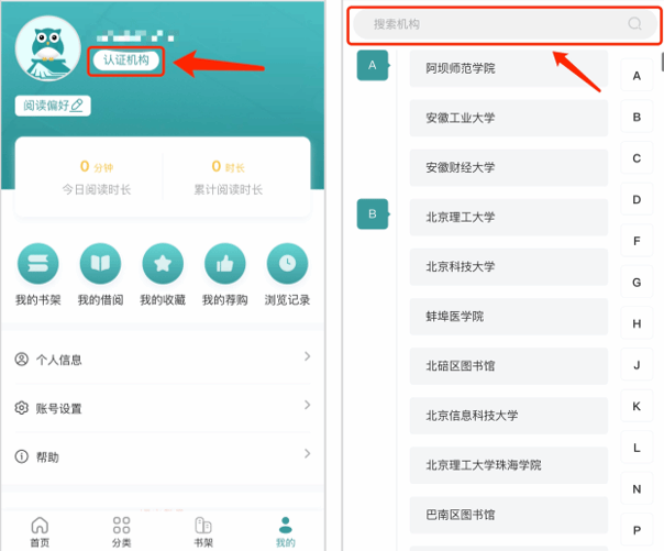 第二步:注册个人账号后请再次进入【我的】页面,点击【认证机构】-检索/选择【beat365正版唯一官方网站】-连接校园网WiFi进行身份认证。
