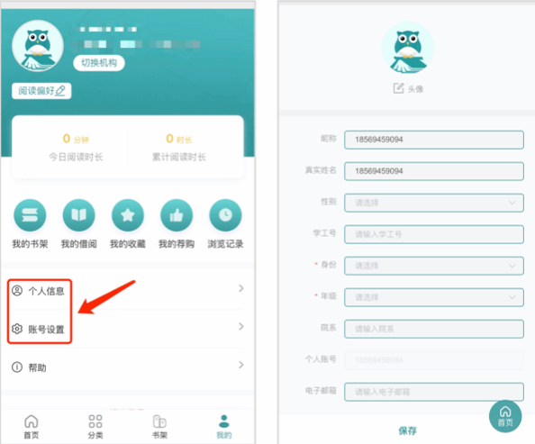 第三步:完成注册认证后的读者,可在【我的】页面中「个人信息」及「账号设置」中修改昵称等个人信息以及登录密码。