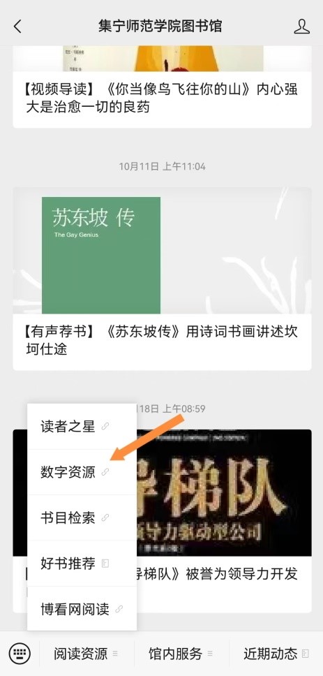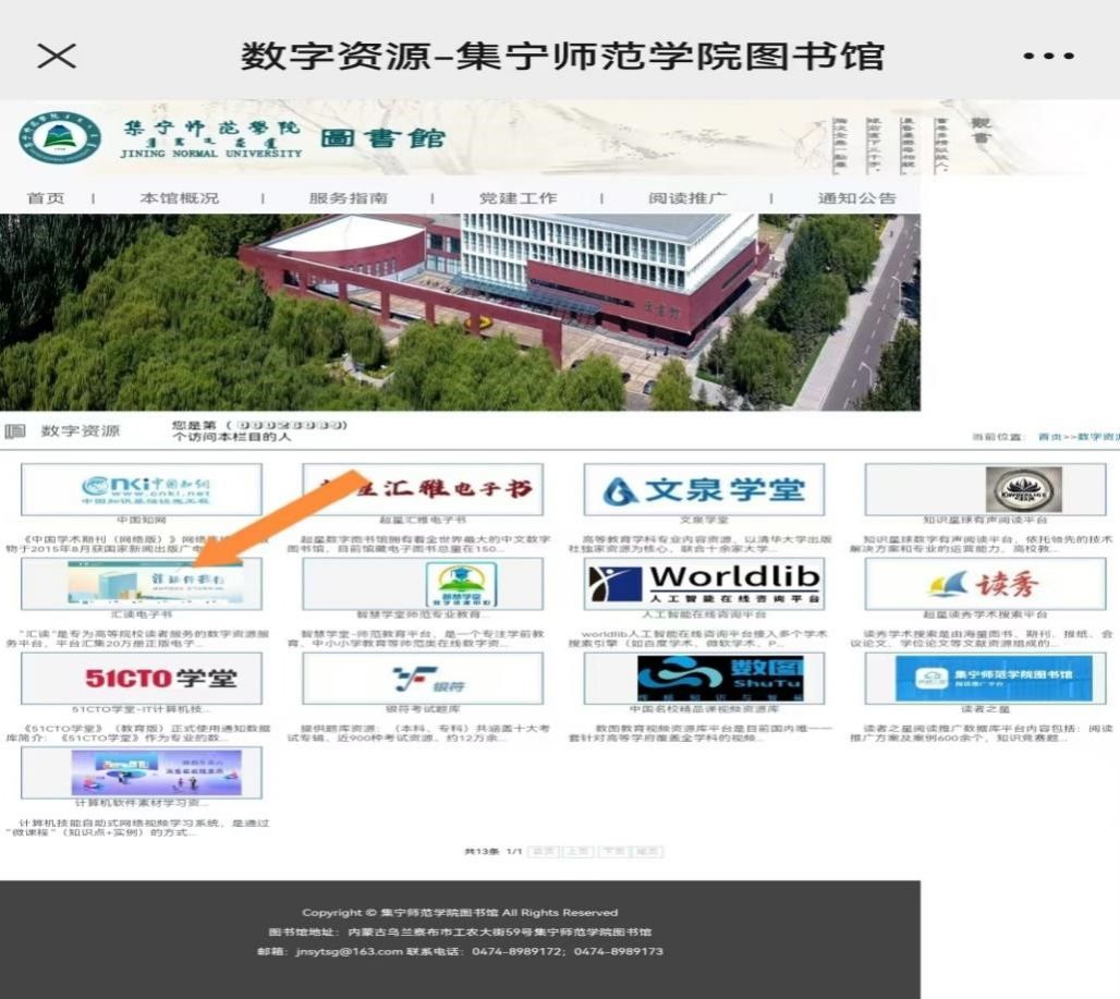 2.进入beat365正版唯一官方网站图书馆公众号后,点击左下方阅读资源→数字资源→汇读电子书。