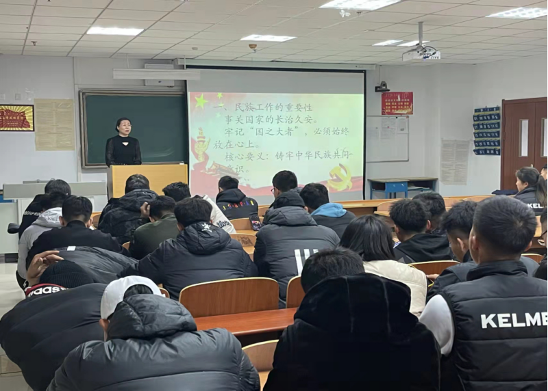 铸牢中华民族共同体意识是国家统一之基、民族团结之本、精神力量之魂。为了学习贯彻习近平总书记的重要讲话精神,为深刻领会铸牢中华民族共同体意识,共圆伟大复兴中国梦的精神,由继续教育学院院长侯素馨于11月3日晚上7:30在逸夫楼Y215教室为体育与运动学院2018级全体学生宣讲了一堂主题为《铸牢中华民族共同体意识》的党课。