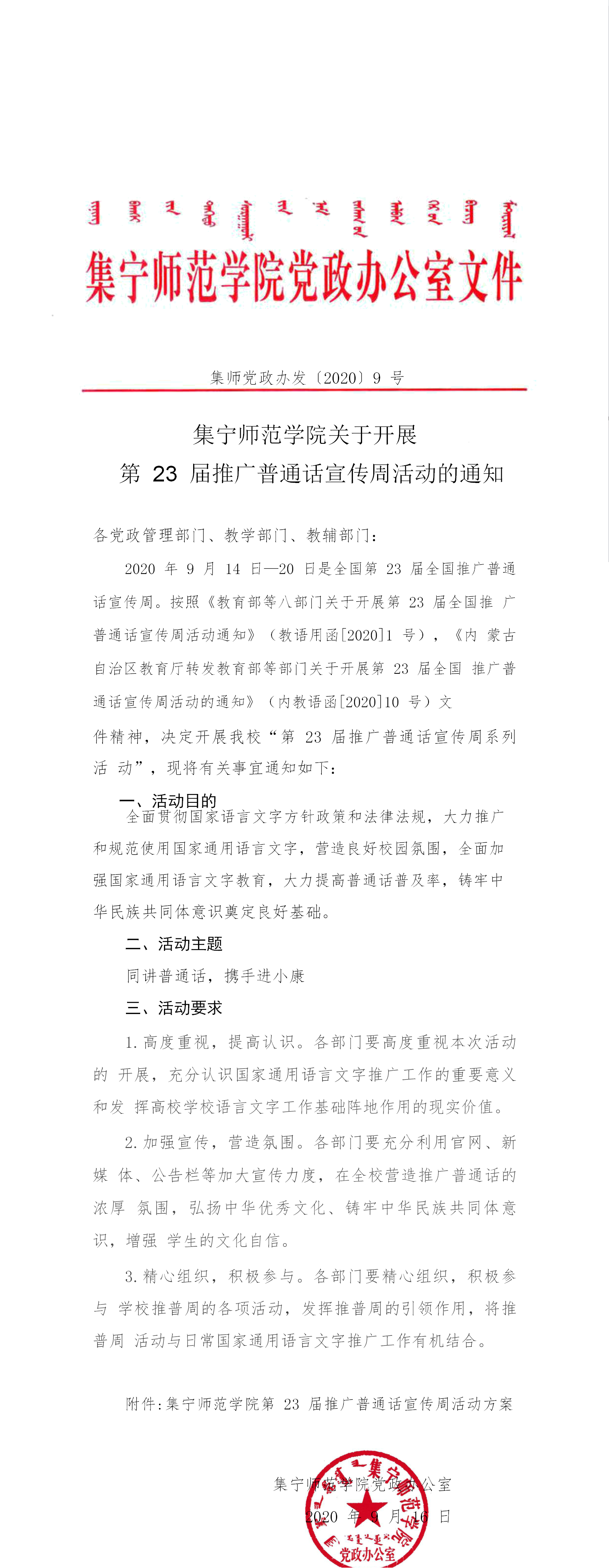 beat365正版唯一官方网站关于开展第23届推广普通话宣传周活动的通知