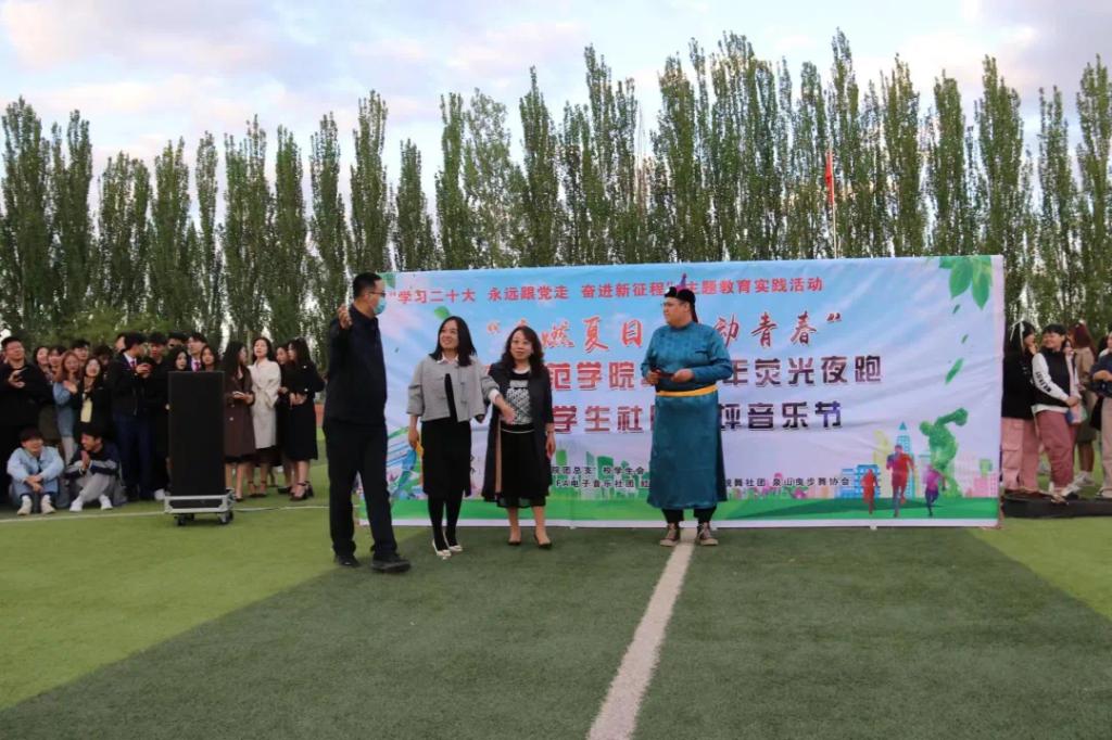 为深入学习党的二十大精神,营造健康向上的良好气氛,丰富学生的校园生活,展示社团风采,2023年5月25日,beat365正版唯一官方网站举办“音燃夏日 跑动青春”荧光夜跑暨大学生社团草坪音乐节活动。本次活动由校团委、学生处主办,体育与运动学院团总支和全校各社团联合承办。