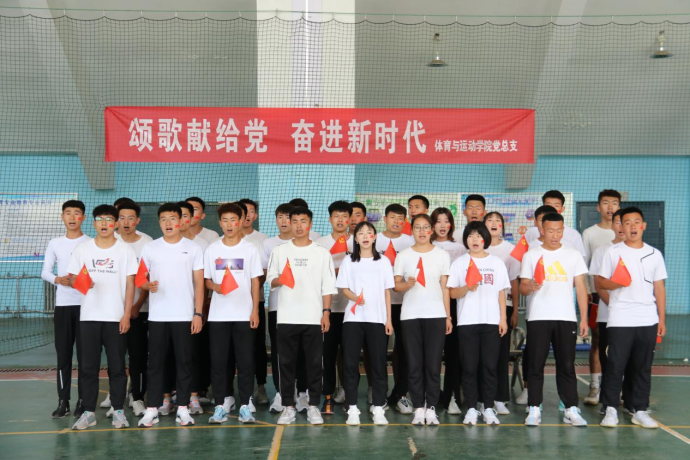 为了隆重庆祝中国共产党成立100周年,进一步加强学院党组织和党员队伍建设,积极营造爱国爱党良好氛围,6月19日下午体育与运动学院在体育馆组织开展了“颂歌献给党,奋进新时代”向党的100年华诞献礼。