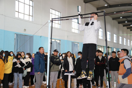 引体向上体现男性的握力、上肢力量和肩带力量,自身力量克服自身重力的悬垂力量项目。同学们用尽自身的洪荒之力,上拉一个,再上拉一个,小宇宙爆发吧!助威声、加油声,澎湃着你不屈的意志,你的力量超乎想象。