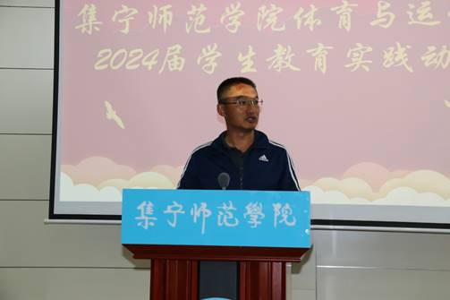 副校长李景杰指出实习是延续课程按照学校和学院的要求去更好的完成实习任务,同时遵守学校和实习单位的校规校纪文明实习,给与体育与运动学院实习工作充分的肯定。