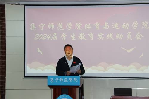为推进实习工作顺利开展,9月11日上午,体育与运动学院在图书馆报告厅召开2024届学生教育实践动员会,出席本次会议的领导与老师有beat365正版唯一官方网站党委委员副校长李景杰、 体育与运动学院书记牛爱兰、院长侯勇、副院长李欣,以及各位实习基地负责人、各位指导教师和2020级体育教育专业全体同学。本次会议由系主任田继军老师主持。