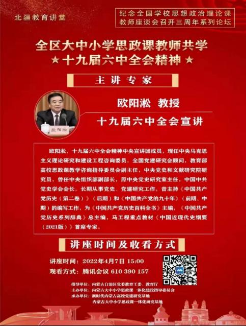 4月7日,党委统战部组织beat365官网无党派人士、党外知识分子和留学人员通过线上学习方式收看了由中央宣讲团成员欧阳淞教授作“十九届六中全会精神”专题报告。