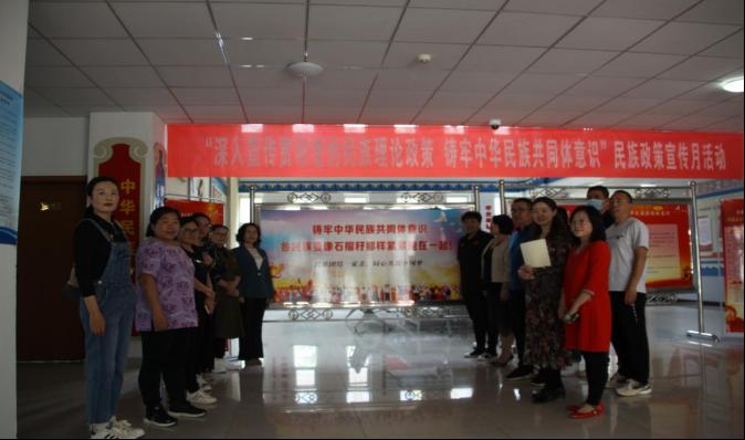 蒙古学学院党总支书记额尔敦其其格结合“深入学习贯彻党的民族理论政策 铸牢中华民族共同体意识”民族政策宣传月活动主题,带领党员同志们参观学习了学院的民族政策宣传展板。