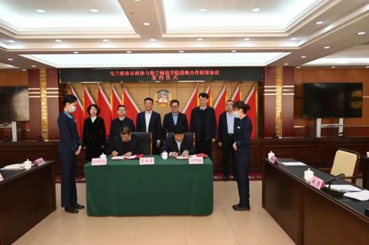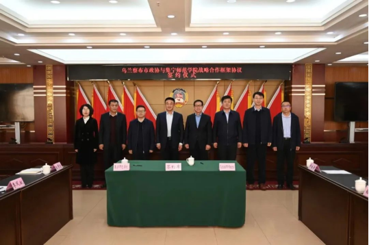 为深入学习宣传贯彻党的二十大精神,进一步加强校地之间的合作交流,3月3日,本着“资源共享、优势互补、互利互惠、共同发展”原则,beat365正版唯一官方网站与政协乌兰察布市委员会共同签署战略合作框架协议。市政协党组书记、主席白颢,市政协党组副书记、副主席杨印,市政协副主席卢生奇,市政协党组成员、秘书长杨源出席签约仪式。beat365正版唯一官方网站党委副书记、校长刘春,副校长李凤斌,党委委员、副校长李景杰,党委委员、统战部长张秀文出席签约仪式。市政协党组书记、主席白颢主持签约仪式。