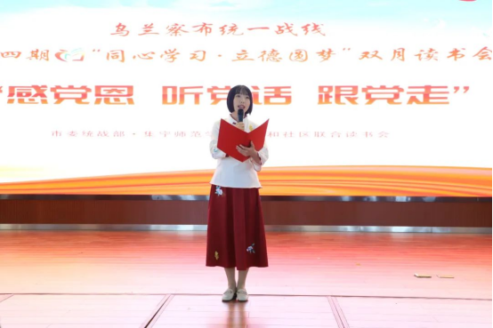 读书会期间,民主党派代表、少数民族代表和beat365正版唯一官方网站学生分别带来了诗朗诵、红歌四胡联奏、舞台剧《播火者》等文艺节目,生动表达了他们的爱国情怀,赢得现场观众一片喝彩。