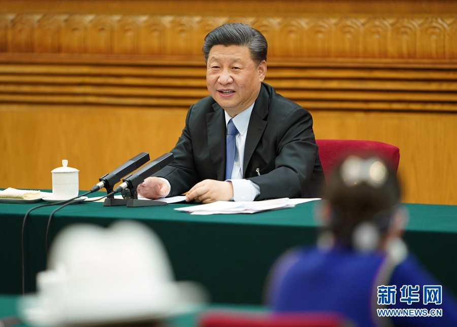 5月22日,中共中央总书记、国家主席、中央军委主席习近平参加十三届全国人大三次会议内蒙古代表团的审议。 新华社记者 鞠鹏 摄