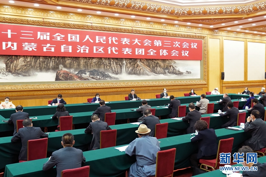 在认真听取大家发言后,习近平作了发言。他首先表示完全赞成政府工作报告,充分肯定内蒙古一年来的工作,希望内蒙古的同志大力弘扬“蒙古马精神”,坚决贯彻党中央决策部署,坚持以人民为中心的发展思想,坚持稳中求进工作总基调,坚持新发展理念,坚决打好三大攻坚战,扎实做好“六稳”工作,全面落实“六保”任务,坚决克服疫情带来的不利影响,确保完成决胜全面建成小康社会、决战脱贫攻坚目标任务,在新时代全面建设社会主义现代化国家征程上书写内蒙古发展新篇章。
