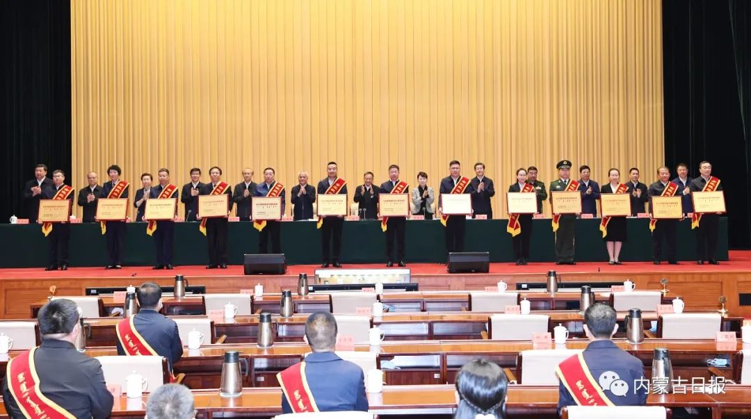 会上,自治区党委常委、统战部部长胡达古拉宣读了关于表彰全区民族团结进步模范集体和模范个人的决定,自治区党委常委、自治区常务副主席黄志强通报了推进民营经济高质量发展的政策措施。自治区领导为受表彰的集体和个人代表颁奖。
