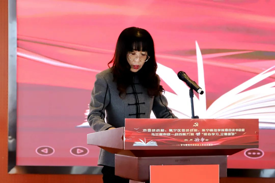 少数民族代表人士、集宁区税务局四级主办 冬日娜:习近平总书记在中央统战工作会议上指出:统一战线因团结而生,靠团结而兴。促进中华儿女大团结,是新时代爱国统一战线的历史责任,我将深入学习宣传中央统战工作会议精神,以更高标准要求自己,努力做一名政治坚定、业务精通、作风优良的干部,发挥自身特点优势,争做民族团结进步的播种人,为建设美丽幸福的集宁家园贡献力量,以优异成绩迎接党的二十大胜利召开。