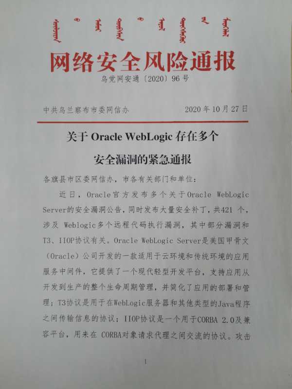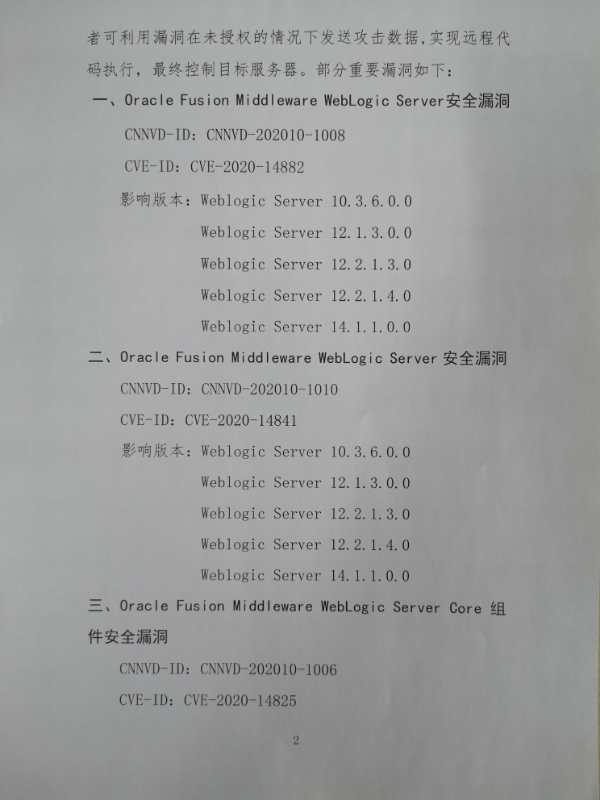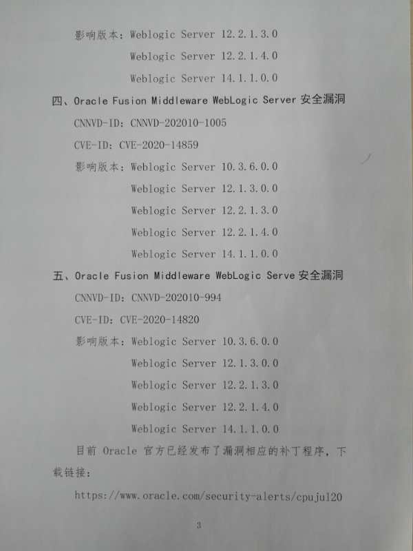 关于Oracle WebLogic存在多个安全漏洞的紧急通报