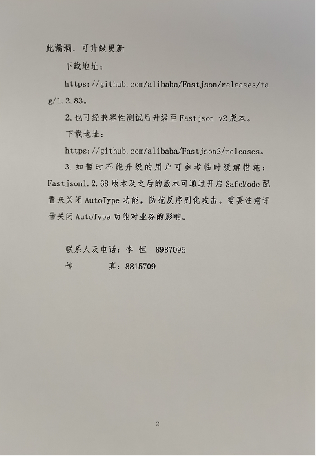 关于“Fastjson 反序列化远程代码执行漏洞”网络安全风险预警通报