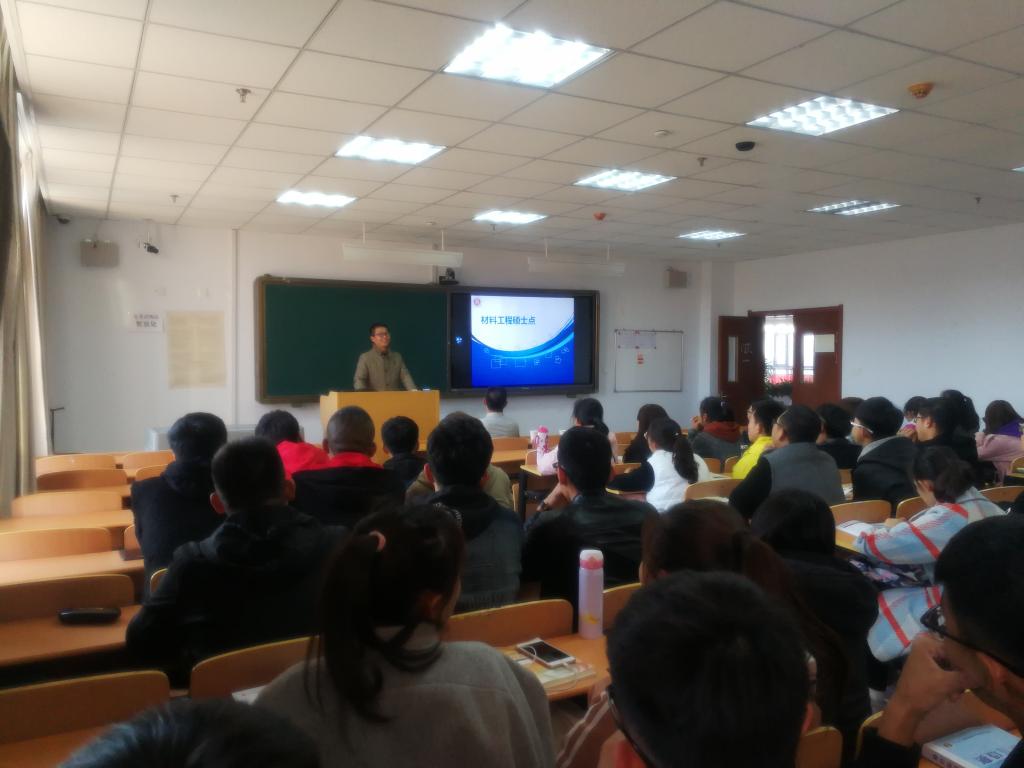 李建刚博士首先介绍了大同大学材料工程硕士点的具体情况,从学科形成与特色、实验室建设、研究方向与队伍建设、科研成果四个方面重点介绍了该硕士点的办学特色,然后着重介绍了工程硕士点的实验室、研究方向、培养方向、师资力量和重点项目。并结合自己的读书工作科研经历,鼓励同学们努力学习,大胆考研。