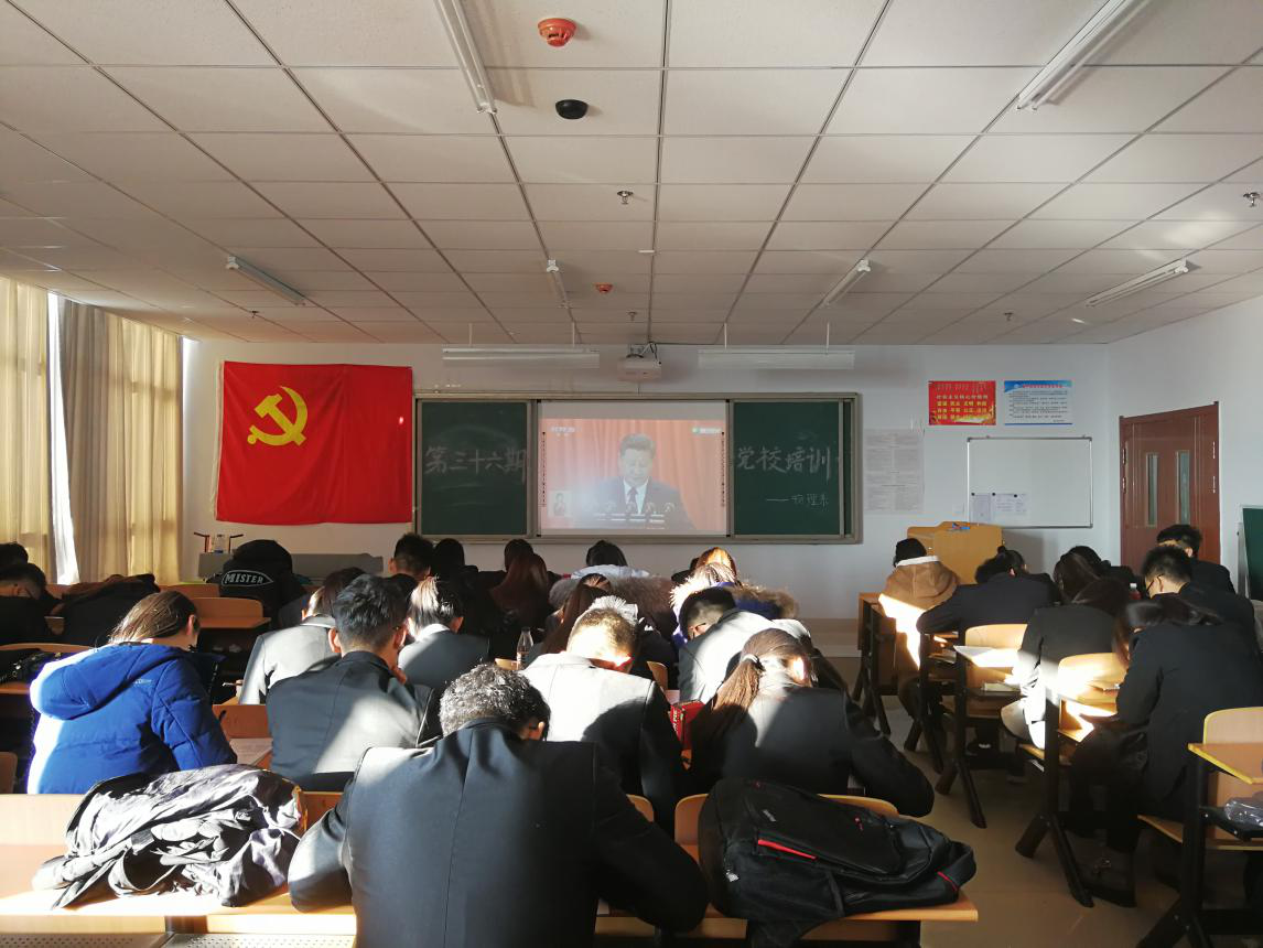 2017年11月22日19:30和11月23日16:30在逸夫楼301邀请思政部晓荣老师以“践行十九大精神,做忠心的爱国者”和“树立远大理想,做新时代有为青年”为主题讲授党课,晓荣老师以自己的见解为同学们深刻的解读了十九大,并对作为青年学生的我们如何做一名合格的爱国者做出了明确要求。2017年11月26日14:30在逸夫楼301聘请校组织部唐学明老师以“发展党员程序”为主题进行讲解,唐学明老师为同学们详细讲解了入党的流程,明确了入党的程序。另外我系在2017年11月26日上午8:00在逸夫楼509为同学们播放了《十九大报告》和《延续中华文脉》。11月26日19:00在逸夫楼507举行了第三十六期入党积极分子培训结业考试。