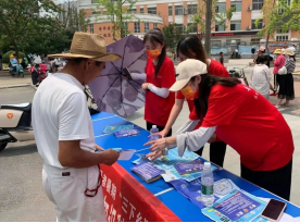 团队成员们通过向过往群众宣传诈骗案例,进一步宣传防诈骗知识,来往群众也主动停下脚步观看海报,并主动和团队交流起曾经经历的诈骗手段。