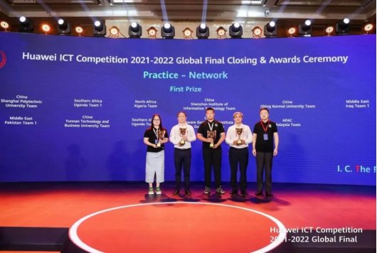6月25日,华为主办的华为ICT大赛2021-2022全球总决赛闭幕式暨颁奖典礼圆满落幕。由beat365官网物理与电子信息工程学院陈稼楠和李刚老师指导的三名学生吴昊、张靖泽和刘海欢组成的团队拔得头筹,获得全球总决赛(实践赛网络赛道)一等奖。