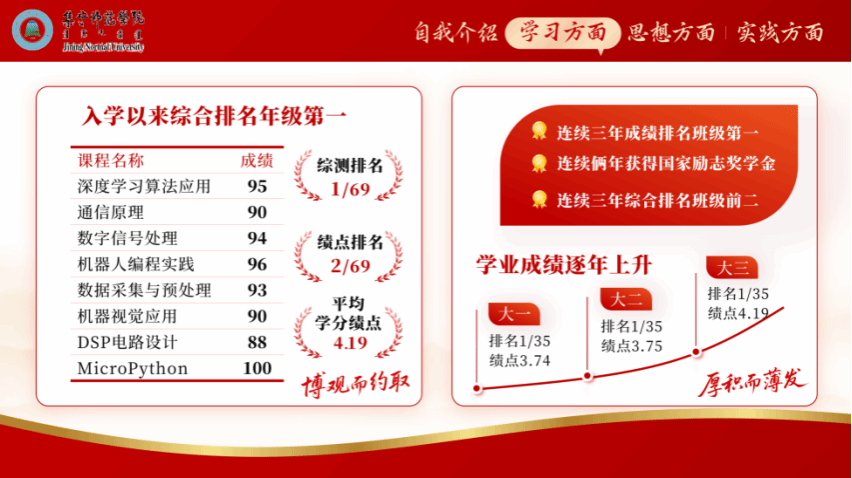 在学科实践方面,她笃行践知,精益求精。她以学科竞赛为抓手锤炼专业硬实力,在竞赛中攻坚克难、突破自我,先后斩获第十六届全国大学生数学竞赛一等奖、第五届“九斗杯”全国大学生物理知识竞赛全国总决赛与华北东北赛区双一等奖、第七届传智杯Web网页开发挑战赛B组省赛三等奖等多项荣誉,实现了专业知识与实操能力的深度融合与高效转化。