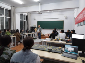 王业胜老师主要讲解电的产生和发展简史,发电机结构及常规发电站的发电流程。在实验室中模拟展示发电机组发电过程。介绍印刷电路板制造技术和电子工艺流程。介绍激光雕刻的简单实用方法。